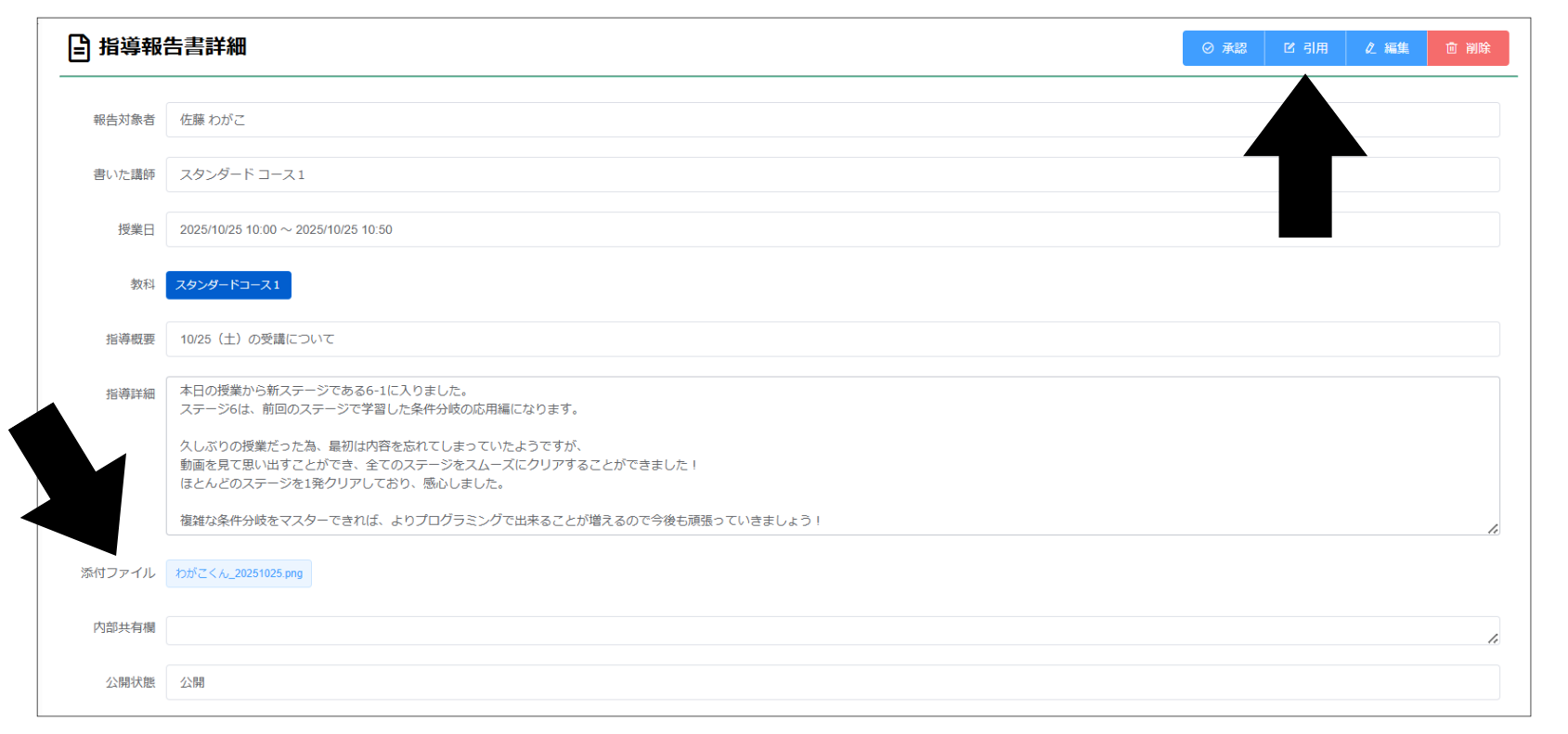 授業前に前回の指導報告書を確認することで、スムーズに授業へ移れます。
