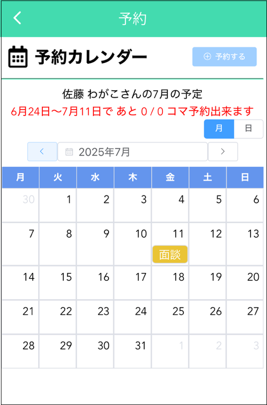 [3]保護者がアプリで空き状況を確認&都合の良い日時を予約